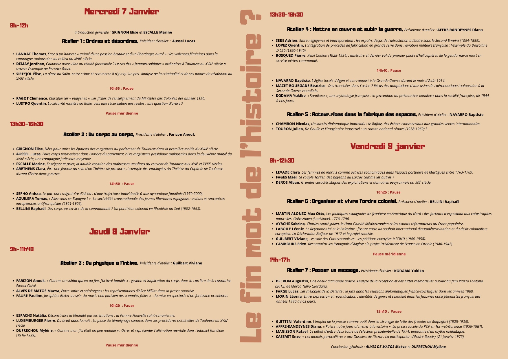 Colloque des Master 2 : Le fin mot de l'histoire ?