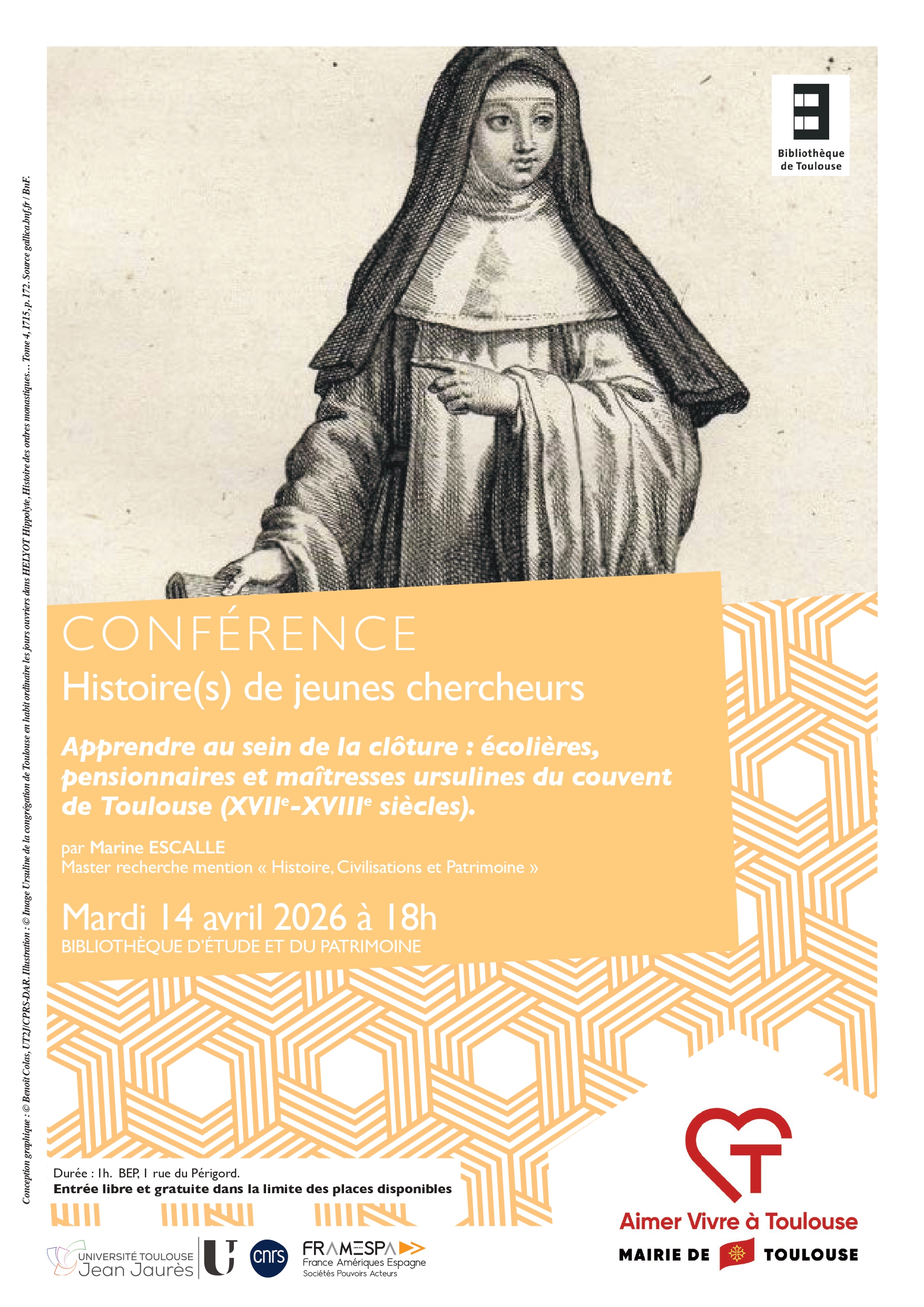 Conférence "Histoire(s) de jeunes chercheurs" : Apprendre au sein de la clôture : écolières, pensionnaires et maîtresses ursulines du couvent de Toulouse (XVIIe-XVIIIe siècles).