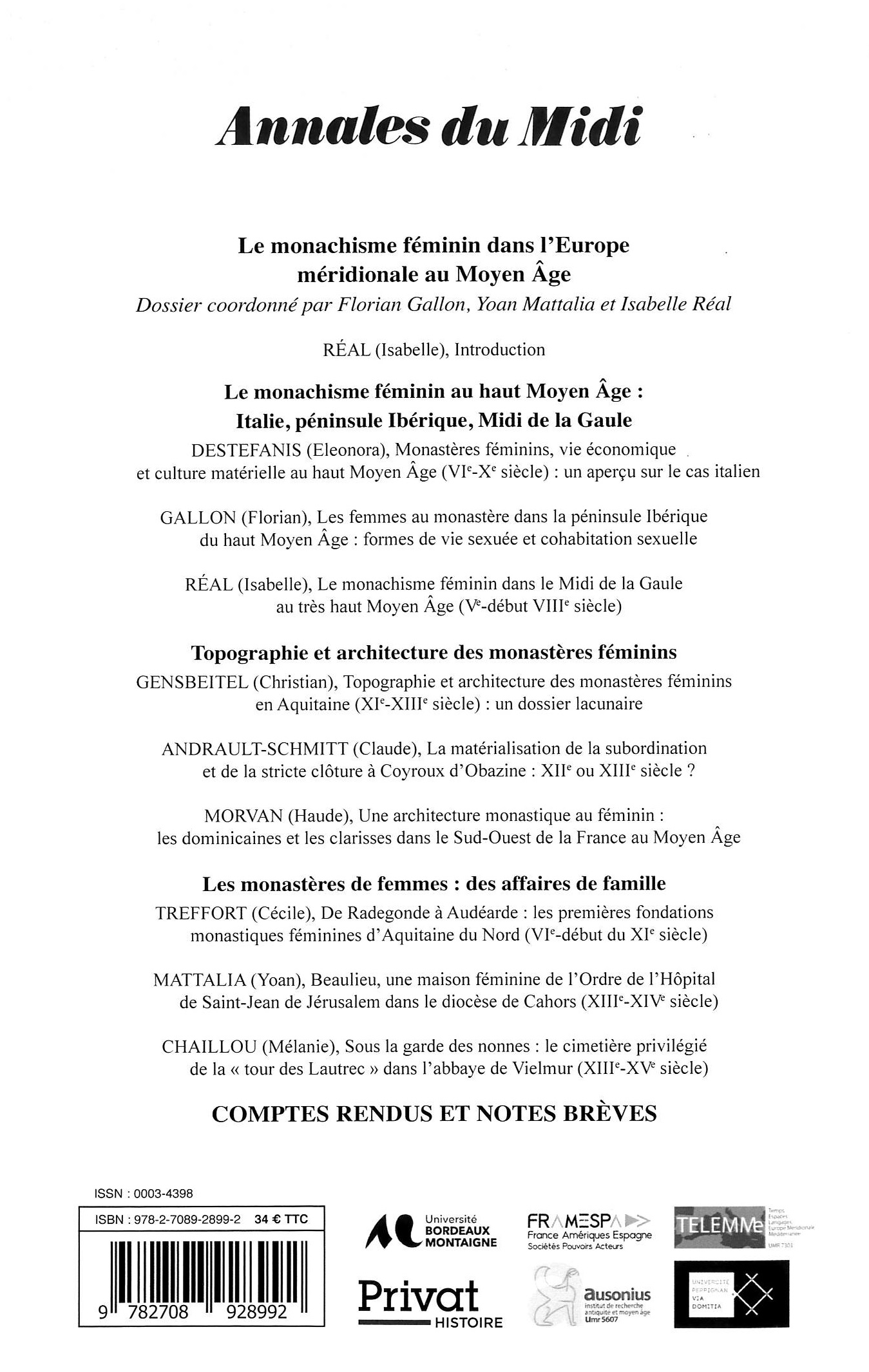 Annales du Midi : Le monachisme féminin dans l'Europe méridionale au Moyen Âge