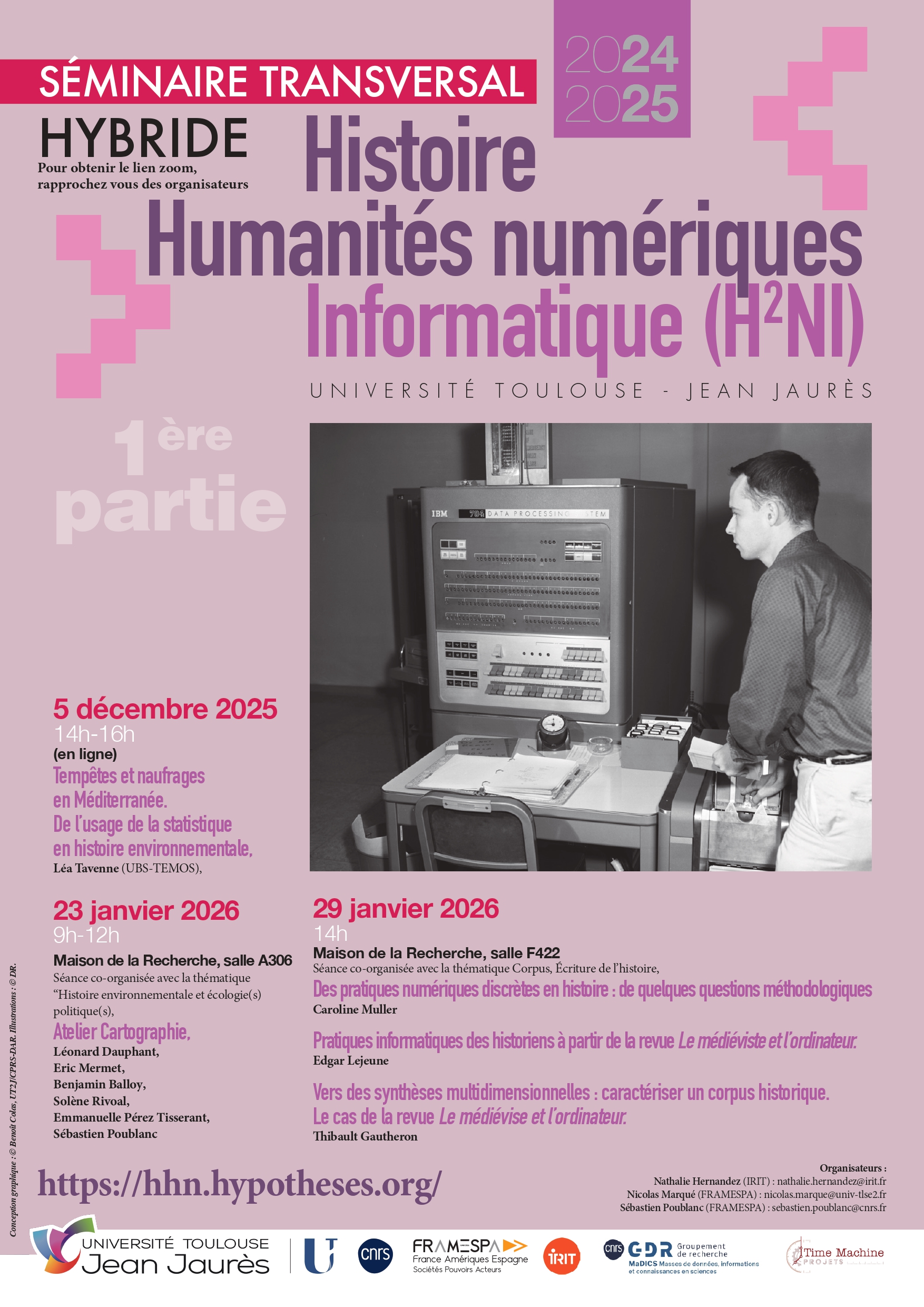 Pour toutes ces raisons, il nous a paru nécessaire de changer le nom du séminaire. Dorénavant, le séminaire Histoire et humanités numériques devient “Histoire << Humanités numériques >> Informatique” (H2NI). Vous trouverez le programme de cette première séance ci-dessous.